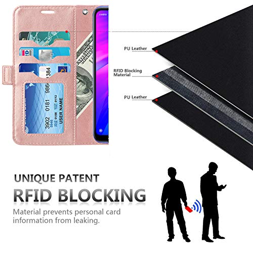 Ferilinso Cover per Xiaomi Redmi S3/ Redmi 7, Custodia Cover Pelle Elegante retrò con Custodia Slot Holder per Carta di Credito Custodia di Chiusura per Cover Xiaomi Redmi S3 Cover Redmi 7(Oro Rosa)