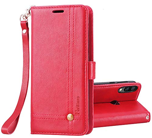 Ferilinso Cover per Xiaomi Redmi Note 7/ Note 7S/ Note 7 PRO, Custodia Cover Pelle Elegante retrò con Custodia Slot Holder per Carta di Credito Custodia di Chiusura Magnetica(Rosso)
