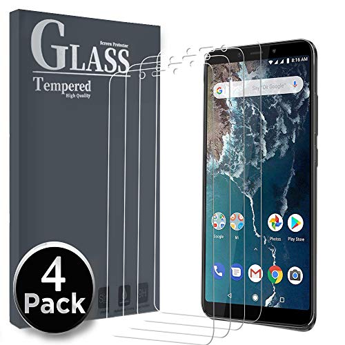 [4 pcs] Pellicola Protettiva Pellicola protettiva in cristallo temperato trasparente compatibile con Xiaomi Mi A2.