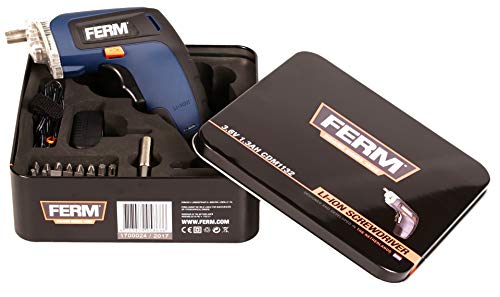 FERM Trapano-avvitatore a Batteria agli ioni di litio 3.6V - 1.3Ah Include set accessori da 27 pezzi