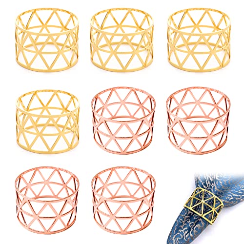 【Confezione e dimensioni】8 pezzi di portatovaglioli, ogni portatovagliolo in metallo ha un diametro di 45 mm e una lunghezza di 30 mm, include 4 portatovaglioli d'oro e 4 portatovaglioli d'oro rosa. che è adatto per la maggior parte dei tovaglioli. Usalo per decorare il tovagliolo monotono e renderlo elegante e delicato.
