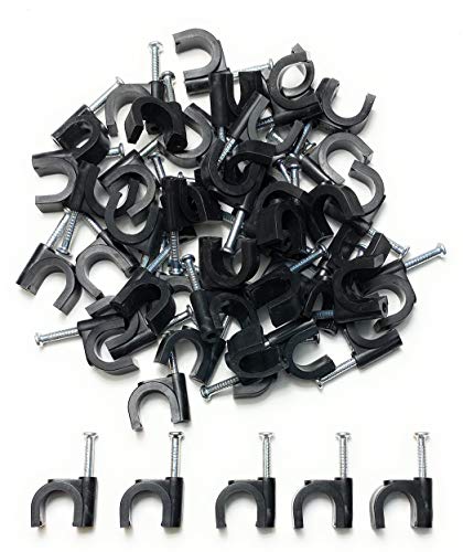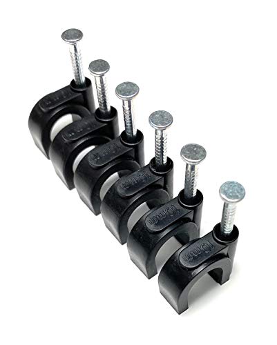 Fermacavi rotondi neri con fissaggio per chiodi, tipo K, confezione da 100 (10 mm)