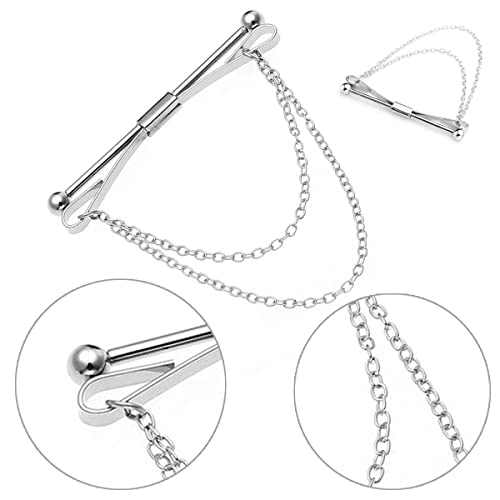 Fermacravatta a Clip per Camicia da uomo, Clip del Colletto Della Camicia, Spilla da Colletto per Camicia da Uomo, per Regalo di Nozze Affari da Uomo,D'argento,Con Catenina