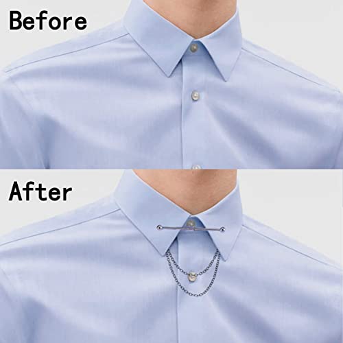 [Materiale di alta qualità] Materiale in acciaio Spille per Collare, galvanica superficiale, buona consistenza. Questo è il perno per l'angolo del colletto, utilizzato tra i colletti delle camicie normali. La catena può essere rimossa.