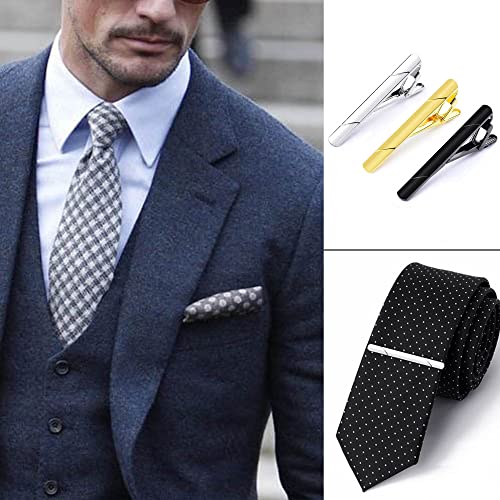 3 pcs,Set Di Fermacravatte Da Uomo,Fermacravatte Per Uomo,Fermacravatta Slim Uomo,Accessori Per Abiti, Adatto Per San Valentino, Natale, Anniversari, Feste, Riunioni,Matrimoni. Nero/Oro/Argento (#1)