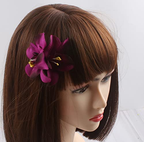 5 fermagli per capelli da donna con fiore di orchidee in chiffon, per capelli con fiori tropicali, artificiali e artificiali, Hawaii, Hibiscus Plumeria, per feste di matrimonio in spiaggia Luau