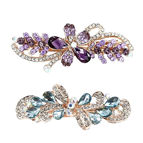 Fermagli per capelli, set di 2 strass di cristallo, eleganti fermagli per capelli da donna, accessori per capelli alla moda con fiore squisito e farfalla (blu viola)