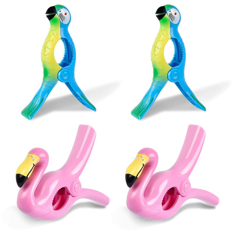 Confezione da 4 fermagli per asciugamani: ci sono 4 fermagli per telo mare, inclusi 2 fermagli per pappagalli e 2 fermagli per fenicotteri. Le loro aperture possono espandersi da 2,3 pollici a 3,1 pollici, rendendoli perfetti per le vacanze in famiglia. Design carino: bellissimi stili di fenicotteri e pappagalli dai colori vivaci, facili da trovare la tua sedia con queste clip, ti aiutano ad afferrare il telo mare ed evita che venga portato via. Materiale di alta qualità: la clip per telo mare è realizzata in plastica di alta qualità, resistente, impermeabile e leggera, facile da trasportare o riporre, la clip per telo prendisole puoi appendere facilmente il tuo asciugamano. Facile da trasportare: puoi trasportare queste pratiche clip durante i tuoi viaggi in spiaggia senza occupare troppo spazio, si adattano a sedie da spiaggia di qualsiasi dimensione in modo da poter appendere asciugamani e vestiti . MULTIFUNZIONALE E MULTIFUNZIONALE: questi portasciugamani possono essere utilizzati