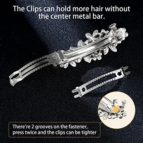 Fermaglio Capelli Automatici 2 Pezzi Forcina Cristallo, Fermacapelli Vintage in Metallo Strass Donna Elegante Sposa Francese Fiori Mollette Capelli Adatta per la Vita Quotidiana, Feste, Matrimoni
