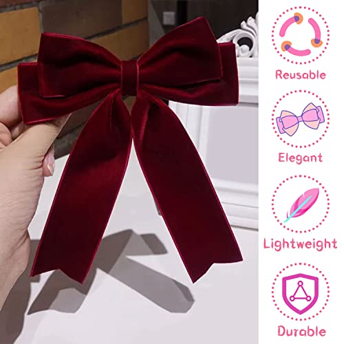 [Stile semplice ed elegante]: questo fiocco per capelli da donna adotta una semplice forma a farfalla come contorno generale, con un fiocco rosso e stelle filanti, creando un'atmosfera elegante e dignitosa. La fettuccia in velluto rende la clip di alta qualità e il il design streamer rende la forma più leggera e flessibile. È adatto a tutti i tipi di trucco e capelli, ed è un piccolo oggetto accattivante.