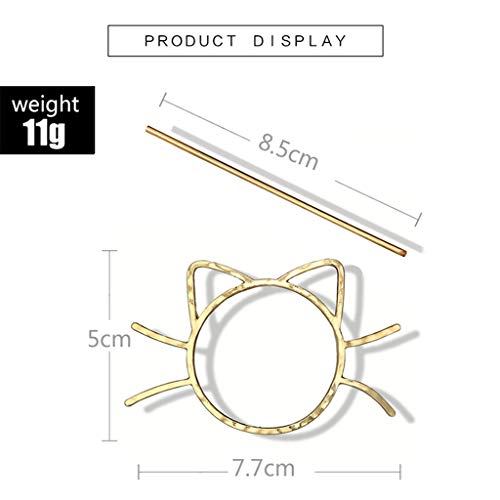 ❤ Clip in lega metallica retrò a forma di gatto cava geometrica carina, oro metallico. Dimensioni: 8 x 5 cm.
