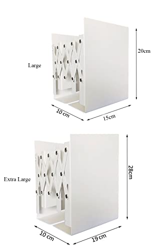 Fermalibri antiscivolo per libri pesanti, fermalibri regolabili extra large in metallo espandibile con tappo per libri da scrivania organizer per riviste (grande bianco)