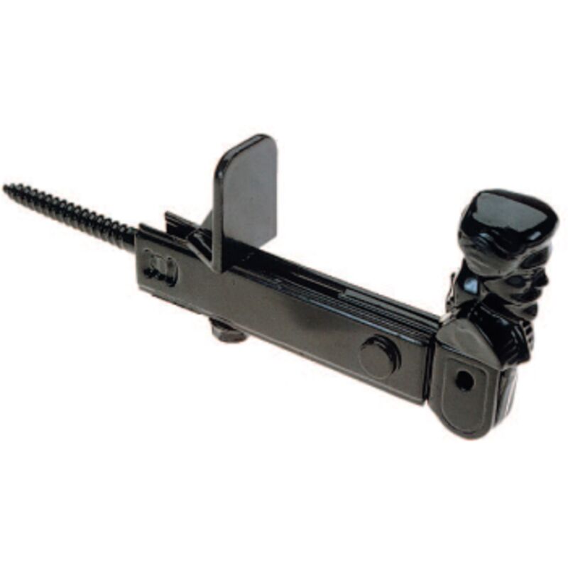 Fermapersiana ad Omino con fermo di battuta registrabile In lega verniciata, con tassello. Colore nero Lunghezza vite: 50 mm Lunghezza totale: 165 mm Apertura minima: 25 mm Apertura massima: 60 mm Marca: Riva Luigi & Angelo Srl