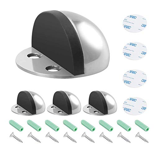 Fermaporta in acciaio inossidabile Fermaporta in Acciaio Inossidabile Resistent Fermaporta a Pavimento Adesivo Porte Protezione in Gomma con Viti e Adesivo 3M Fermaporta Ovale da Pavimento( 4 Pezzi)