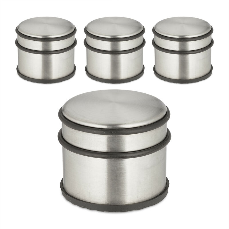 Un fermaporta è un accessorio indispensabile in casa e in ufficio, in quanto permette che le finestre e le porte non si chiudano all'improvviso a causa della corrente. La struttura pesante del blocca porte e il rivestimento antiscivolo garantiscono una stabilità ottimale. Gli anelli in gomma proteggono il pavimento, le porte e le finestre da graffi o urti. Set da 4 fermaporta in dettaglio - Misure complessive H x D: 7,5 x 9 cm ca. - Peso per blocca porte: 1,1 kg ca. - Materiale: acciaio inox, sabbia, gomma - Colore: argento, nero Blocca porte in acciaio inossidabile - Pratico set da 4 fermaporta dal design classico - Evitano che porte e finestre si chiudano bruscamente - Proteggono il pavimento e le pareti da graffi e urti - Con 2 anelli in gomma - Fondo antiscivolo per una stabilità ottimale - Posizionabili in cucina, in bagno, in corridoio ecc. Contenuto della spedizione - 4x fermaporta - Articoli decorativi non inclusi