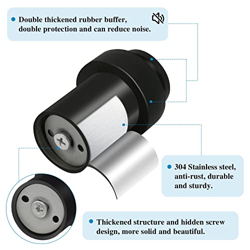 Design per uso versatile: la gomma del fermaporta ha una finitura nera classica con dimensioni compatte e design a vite nascosta, semplice ma efficace, elegante, pulito e moderno stile di arredamento rende i fermaporta neri si adattano bene a qualsiasi scena come patio, battiscopa, commerciale, industricale, bagno, camera da letto, scuola, garage, ufficio, esterno, ecc.