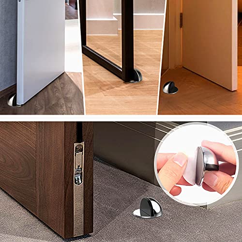 Fermaporta Autoadesivo, Ferma porta a Pavimento in Acciaio Inox, Protezioni per Mobili da Parete Porta, 4 Pezzi, Argento