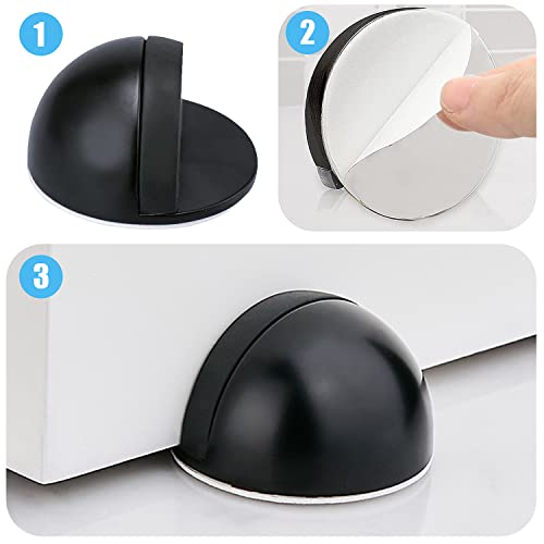Fermaporta Autoadesivo, Ferma porta a Pavimento in Acciaio Inox, Protezioni per Mobili da Parete Porta, 4 Pezzi, Nero