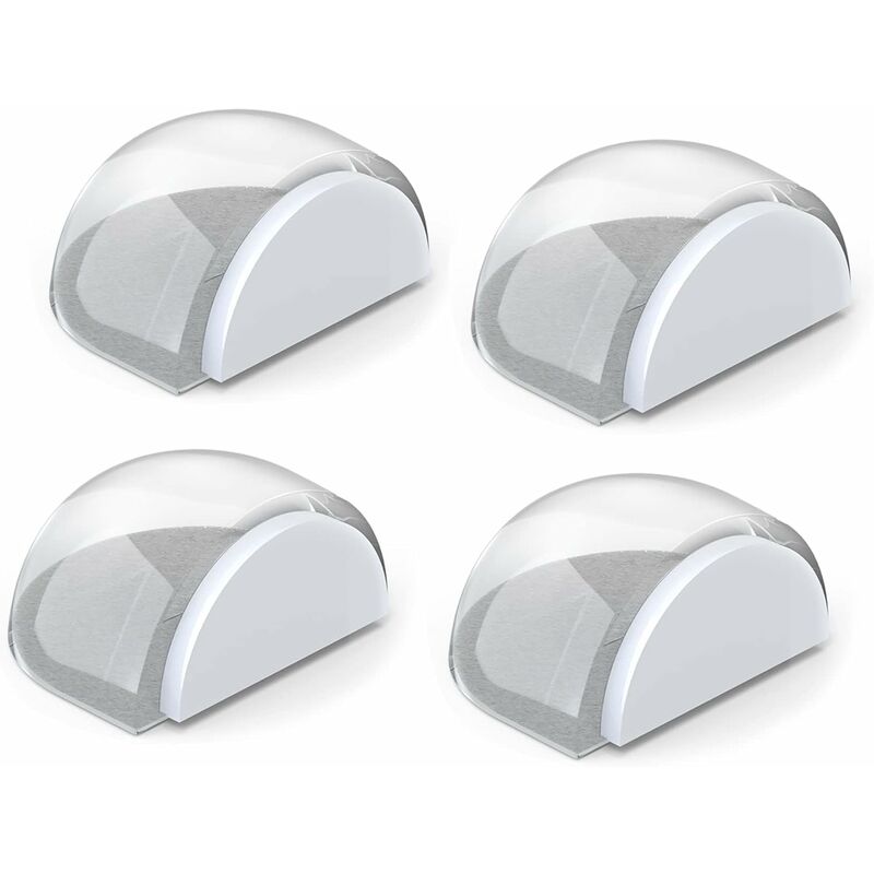 Fermaporta invisibile: molto discreto grazie al tipo di plastica trasparente, a differenza altri fermaporta spesso ingombranti. Protezione perfetta: i fermaporta hanno un la colla è la protezione perfetta contro le porte che sbattono e quindi previene i segni su pareti e mobili. Facilità di montaggio: fermaporta autoadesivo senza viti o fori, basta rimuovere la pellicola adesiva trasparente del fermaporta e incollarla;