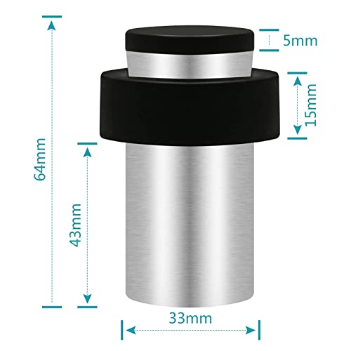 Fermaporta cilindrico a parete, resistente, in acciaio inox, per uso commerciale, in gomma, per smorzamento del suono, 64 mm, confezione da 2
