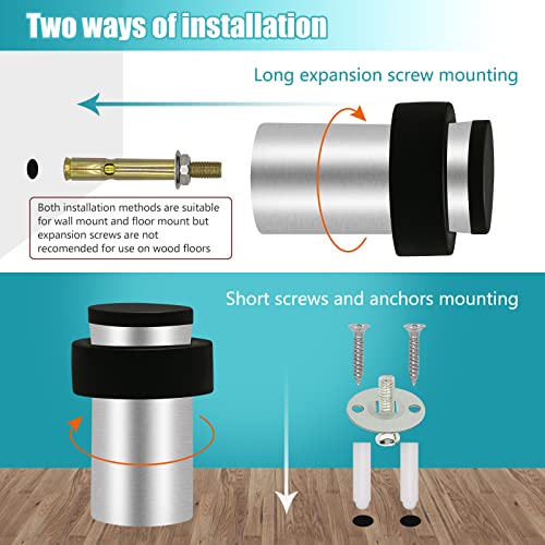Facile installazione: i fermaporta in argento sono dotati di 2 tipi di viti (viti a espansione lunga e viti comuni), solo bisogno di un trapano per fissare la fermata della porta in pochi minuti. I fermaporta commerciali possono essere applicati a parete o a pavimento, comodi per soddisfare le diverse esigenze di installazione.