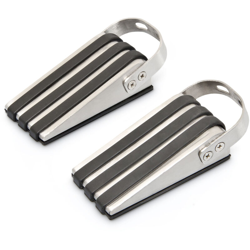 Questo set include 20 fermaporta chic con rivestimento in gomma, da porre sotto le porte o finestre per evitare che sbattano quando lasciate aperte. I fermaporta sono in acciaio inossidabile spazzolato e rivestiti con uno strato di gomma nera seghettata antiscivolo sul fondo, fornendo così maggiore resistenza. Sulla parte superiore del rivestimento in gomma ci sono 3 strisce strette. Fermaporta a cuneo in dettaglio - Dimensioni H x L x P: circa 3,7 x 5 x 12,5 cm - Materiale: acciaio inossidabile spazzolato - Rivestimento antiscivolo in gomma - Peso: ca. 130 g - Pratico set da 20 Set pratici fermaporta in acciaio - Con manico per poterli spostare comodamente - Protegge porte e pavimento da danni - Con rivestimento in gomma antiscivolo - A forma di cuneo per poterli posizionare sotto le ante - Anche per porte particolarmente distanti dal pavimento Condizioni di consegna - 20x fermaporta in acciaio inox - Gli elementi decorativi non sono inclusi nella consegna