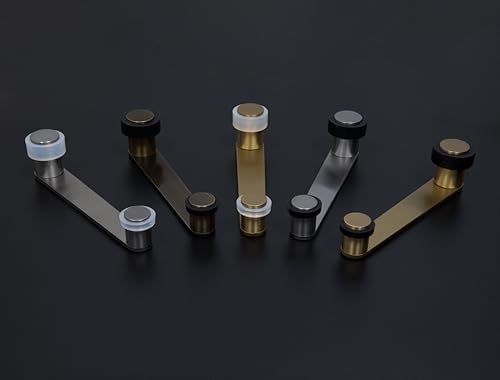 Fermaporta con fermo girevole| Per porta fino a 100 mm di spessore | Ottone | Include vite + tassello | Rif I-253 | EVI Ferramenta (Laton Opaco - Gomma bianca)