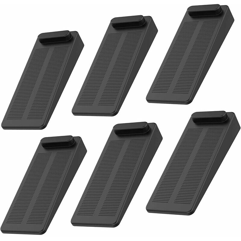 44 grammi di peso leggero, confezione da 6 zeppe, nero. Design antiscivolo: i fermaporta sono realizzati in morbido silicone, progettati con una superficie inferiore scanalata, per mantenere le porte saldamente in posizione e prevenirle dalla chiusura per scivolamento o scivolamento. Altezza regolabile: 6 fermaporta possono essere impilati insieme per adattarsi a spazi massimi fino a 90 mm, 1 fermaporta può avere spazi minimi di 3 mm.SI PREGA di misurare l'altezza dal fondo della porta sul pavimento prima dell'acquisto! Sicuro, ecologico e durevole: i fermaporta sono atossici, inodori, i fermaporta sono realizzati in gomma siliconica superiore per confermare un uso sicuro. Applicazione universale: può essere facilmente inserito negli spazi delle porte, adatto a tutte le superfici, tappeti, cemento, piastrelle e piastrelle in legno. Porte in legno, porte in metallo, porte in vetro ecc. Descrizione del prodotto< /p> Fermaporta I