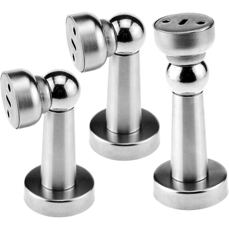 Materiale: acciaio inox Lunghezza ferramenta da parete: 8 cm. Lunghezza ferramenta da anta: 2 cm. Impedisce alla porta di sbattere contro il muro. Testa: con un anello esterno sulla testa e c'è del ferro nell'anello.