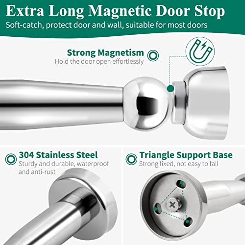 Forte magnete: il supporto magnetico per porta è lungo 17,8 cm con un design a presa morbida e un potente magnete per fermare e catturare saldamente la porta, non più la porta che oscilla sulla parete in caso di brezza o vento forte. Il fermaporta cromato previene danni e rumore da sbattere la porta e protegge i bambini dalla chiusura rapida della porta.