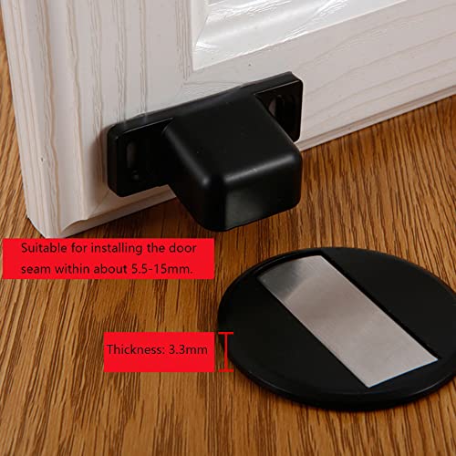 Confezione inclusa: Riceverai 2 pezzi di fermaporta magnetici neri, 4 pezzi di vite, 2 pezzi di pellicola e 2 pezzi di tappo di gomma verde, adatti per una distanza tra la porta e il pavimento tra 5 mm e 15 mm, minore è lo spazio tra la porta e il pavimento, più forte è il magnete. Non consigliato per porte pesanti.