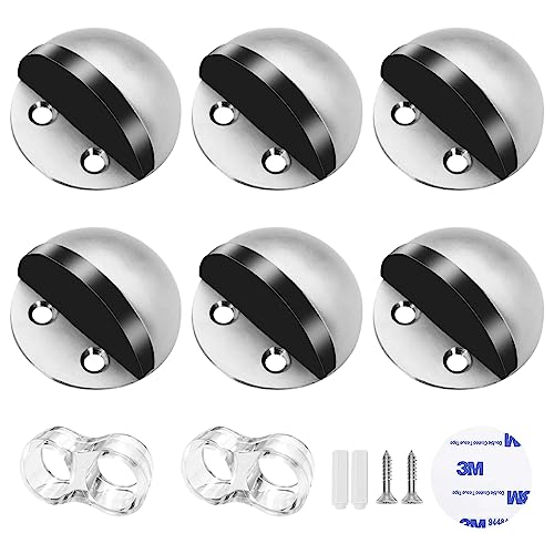 Fermaporta da Pavimento Autoadesivi 6 Pezzi, Fermaporta in Acciaio Inox, avec 2 Pezzi Fermaporte Anti Protettori Maniglia Della in PVC, per Tutti i Pavimenti per Proteggere Pareti e Mobili