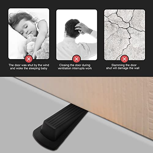 Set di fermi per porte: Include 4 fermaporta, ognuno dei quali misura 12/4,8" (L) X 5,5/2,2" (W) X 3,2/1,3" (H), sia che si tratti di un ufficio, di una casa o di una porta industriale pesante, è anche possibile raddoppiarli per installarli sotto la maggior parte delle cuciture delle porte, e il fermaporta si adatta a quasi tutte le porte.