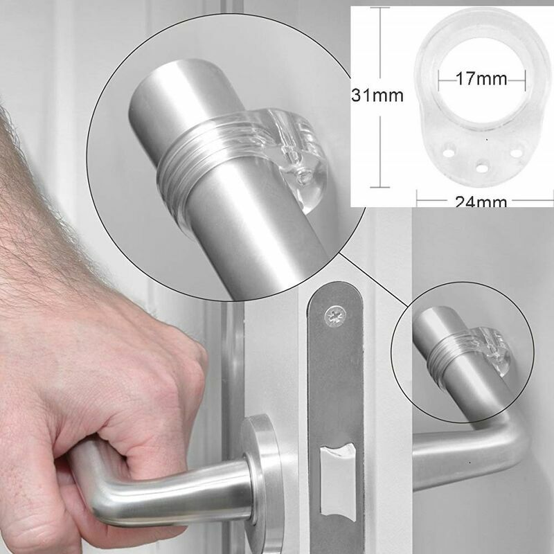 Materiale - : la copertura di protezione della maniglia della porta è realizzata in PVC morbido ed elastico di alta qualità [Protezione da parete]: quando la porta viene spinta, il paraurti della maniglia della porta rimbalza sul muro per evitare danni al muro ed eliminare completamente il suono sferragliante [Installazione semplice]: non è necessario attaccarlo al muro, basta installarlo sulla maniglia della porta< /p> [Dimensione compatibile]: la dimensione è 3x2,2x1,2 cm, il diametro interno è di circa 1,6-1,7 cm, scegli in base alla dimensione < /p> [Ampia applicazione]: bellissimo colore trasparente progettato per camera da letto, cucina, bagno e ufficio