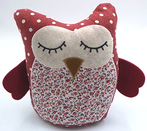 Fermaporta in stoffa morbido colore rosso a pois bianchi e fiori a forma di gufo (22 x 18 x 10) peso 1kg