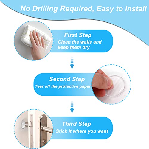 【Eccellente Protezione】Il fermaporta pavimento è realizzato in plastica elastica di alta qualità con le migliori prestazioni di smorzamento, inodore, trasparente, conveniente e altamente adesivo. È una protezione perfetta contro le maniglie di porte e finestre che danneggiano pareti e mobili.