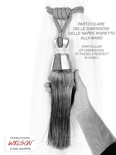 Raccogli tenda tiebacks WILSON dotato di nappe a sfera e cordoni. Davvero un prodotto elegante e di qualità ben rifinito in tutte e sue parti. Pratiche e comode per raccogliere tutti i tipi di tenda dalle più pesanti alle più leggere.