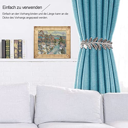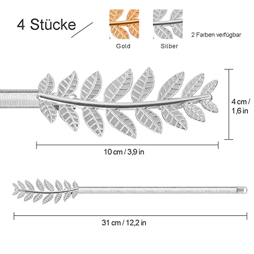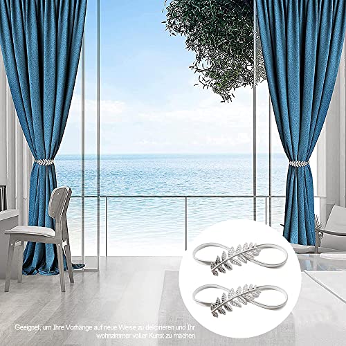 Fermatende Tende, 4 Pezzi Clip Tende con Foglie D'argento, Supporti per Tende Elastici in Lega Metallo Regolabili, Passanti per Tende con Corda Molla