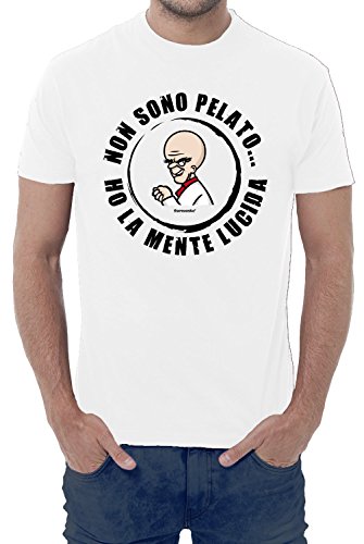 Fermento Italia T-Shirt Uomo Divertente Non Sono PELATO.Ho LA Mente Lucida - Maglietta Umoristica 100% Cotone JHK (50-52 XXL EU Uomo, Bianco)