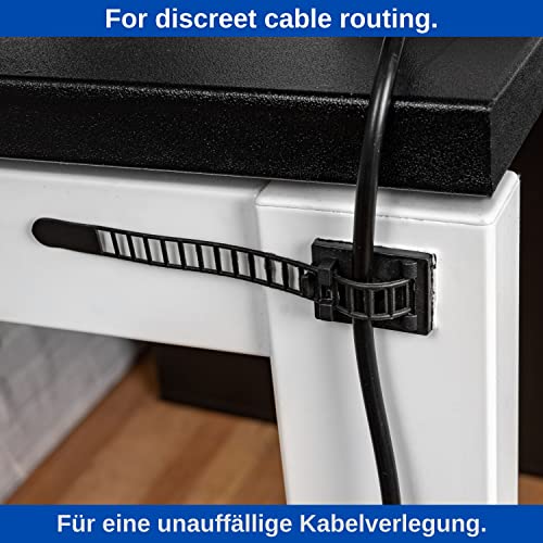 Fermi Autoadesivi per Gestione Cavi, 50 pz, Nero, Fino a Ø 10 mm, Supporto per l'Organizzazione di Cavi TV, PC, Laptop, LAN e Cavi di Alimentazione, Clip Fermacavi Adesive, Clip Cavo Autoadesivo