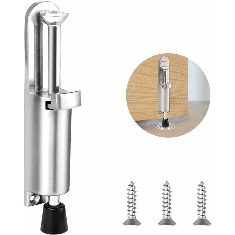 Accessori essenziali per la porta: La porta di casa fa spesso molto rumore di chiusura a causa del forte vento? Il nostro fermaporta antiscivolo può fissare efficacemente la porta e proteggere il muro dall'impatto causato dal contatto tra la porta e il muro. Materiali di alta qualità: Il fermaporta è realizzato in lega di zinco di alta qualità e gomma antiscivolo, molto resistente e durevole, non facile da arrugginire e danneggiare. È adatto per la maggior parte dei tipi di porte, ideale per proteggere porte e pareti. Design di protezione in gomma: l'estremità inferiore del fermaporta a molla è progettata con gomma di alta qualità, che può proteggere efficacemente il pavimento e fornire una presa migliore. Il materiale in gomma può ridurre il rumore e la resistenza agli urti e fornire maggiore stabilità per il fissaggio della porta. Pratico design a molla: L'asta del pistone a molla all'interno del fermaporta in lega di zinco ha un'elevata elasticità e non è facile da deformare. È