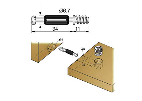50 x Fermo Perno Eccentrico Connectore per Mobili Dimensione: 34 mm/45mm