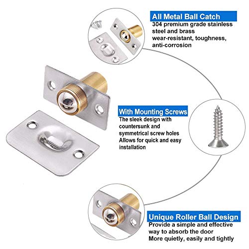 Fermo a Sfera Porta, 2 Pezzi Inossidabile Chiusure a Sfera a Rullo, con Viti Chiusure a Sfera a Rullo, Chiusure per Porte Regolabili, per l'Armadio Della Cucina di Casa Armadietto Dell'Armadio