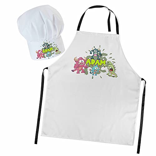 Ferocity Set Cappello da Cuoco e Grembiule Regolabile per i Bambini con Il Tuo Nome Accessori da Cucina con Il Testo Desiderato Creature [099]