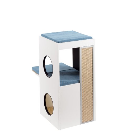 Ferplast Albero gatti gatto BLANCO tiragraffi cuccia pallina gioco due ripiani, 40 x 55 x h 80 cm