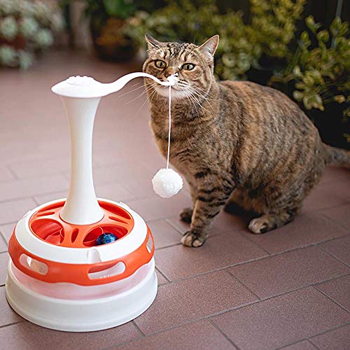Ferplast Gioco Gatto Interattivo TORNADO, Gioco Gatto Automatico con Peluche e 2 Palline Incluse, Giocattolo Gatto Elettronico con Piedini Antiscivolo, Ø 24 x 34 cm