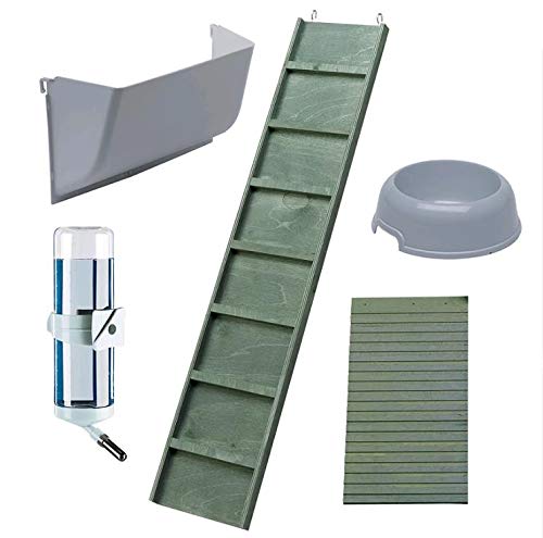 È realizzato in pino nordico di prima qualità e il tetto è ricoperto di un materiale idrorepellente e isolante contro la pioggia, il freddo e il calore. Gabbia dotata di clip di mantenimento per una buona chiusura del tetto, di un'apertura totale del tetto (con braccio di supporto), di una casetta con 2 porte di accesso esterne (con chiavistello di chiusura) e interna, di una scala in legno, di una grande vasca per lettiera rimovibile, di un fondo del vano con sportello di accesso al pavimento che è richiudibile. Consegnato con 1 rastrelliera per il fieno, 1 biberon d'acqua e 1 ciotola per cibo. Dimensioni da terra: 148 cm x 75 cm. Dimensioni del piano completo: 148 cm x 75 cm. Dimensione della casetta: 41 cm x 70 cm. Da montare. 54 kg circa Spedizione per corriere compreso nel prezzo.