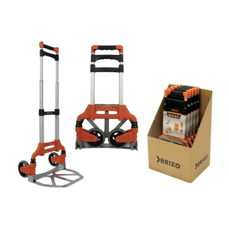 Carrello richiudibile. Struttura e piano appoggio in alluminio 38x27 cm. Portata 60 kg. Dimensioni 40x40xH90/100 cm. - Chiuso 5x38xH63 cm. Confezione in display