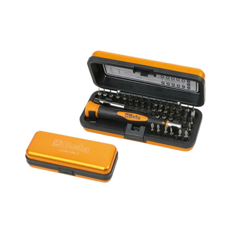 Microgiravite bimateriale con 36 inserti intercambiabili da 4 mm. e prolunga magnetica. Contenuto: 9 inserti Totx - 5 inserti Tamper Resistant Torx - 9 inserti Taglio - 5 inserti impronta esagonale - 4 inserti Phillips - 4 inserti Pozidrive