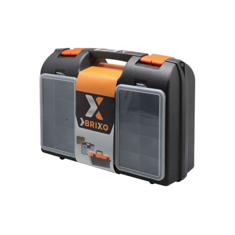 In materiale plastico antiurto, con organizer trasparente 9 divisori portaminuterie, chiusure a scatto, completa di spugna. Dimensioni 37x33x14 cm.